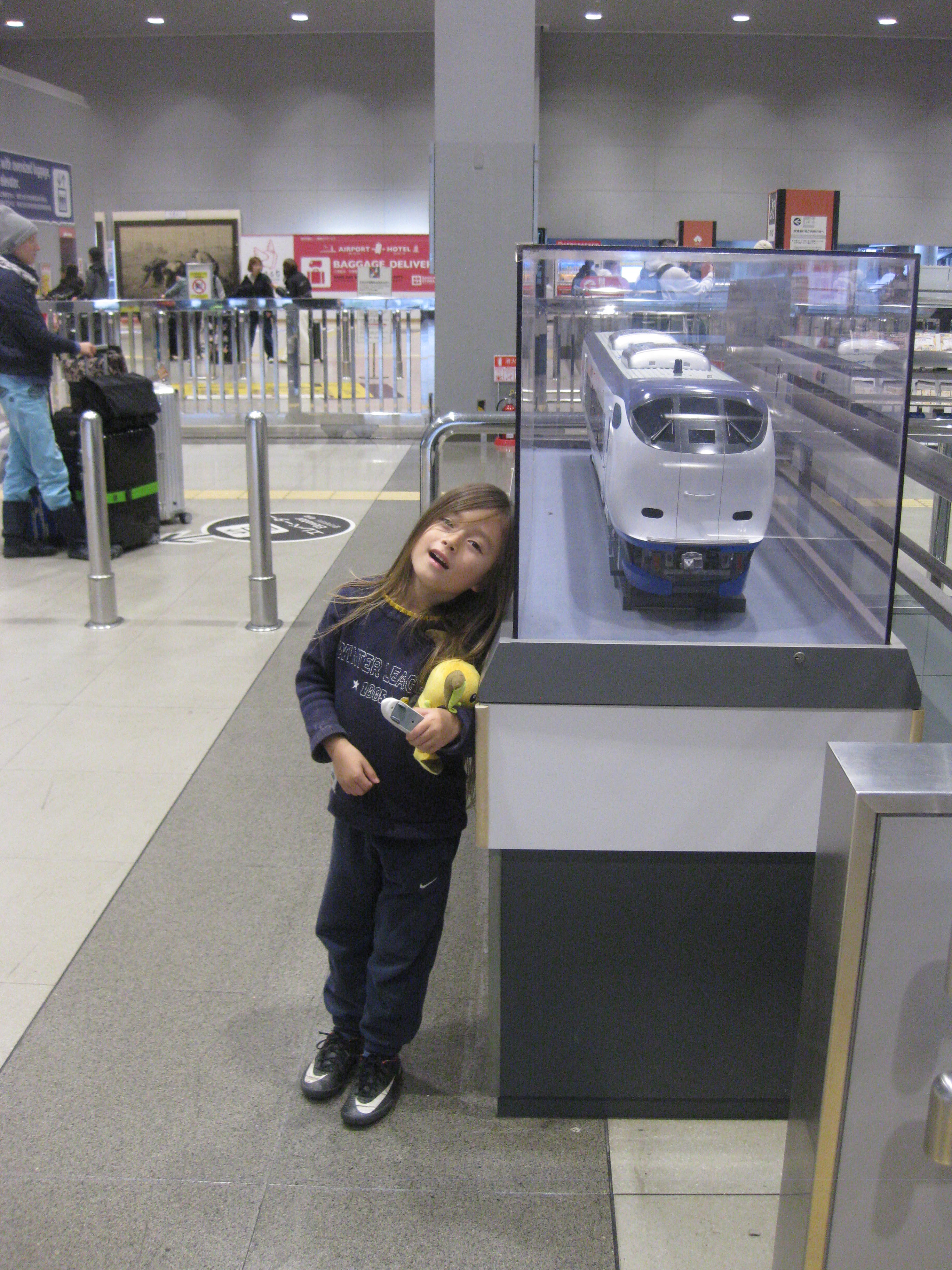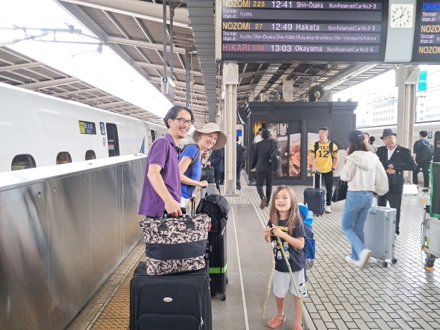 Nun ja, wir haben definitiv viel erlebt. Fast täglich sind wir einen anderen Zug gefahren. Sei es ein Shinkansen (Nozomi, Sakura, Tsurugi), ein Limited Express (Thunderbird, Haruka, N’EX), oder auch Oldtimer wie den Sagano Torokko in Kyoto und den Streettrain in Okayama, unser Zugliebhaber Yasu ist voll auf seine Kosten gekommen. Einmal fuhr er sogar als einziger Passagier auf einer Mini-Lok zwei Runden im Oita Bahnhof. Entsprechend haben wir viele touristische Attraktionen besucht, was in Japan auch heißt, dass wir mit vielen verlockenden Souvenir-Läden konfrontiert wurden. So durften wir erleben, wie Yasu, mit einem großzügigen Taschengeld von seinem Großonkel Shoji (10.000 Yen, ca. 60 Euro) ausgestattet, seine ersten Shopping-Erfahrungen sammelte.